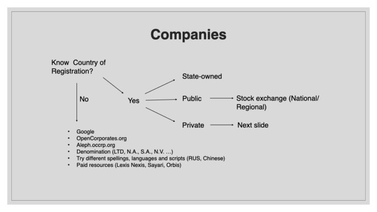 Pour analyser les sociétés privées, l’équipe de recherche du Centre Pulitzer utilise les registres des sociétés et les bases de données des sociétés comme Sayari. Il s’agit de l’une des bases de données les plus accessibles quand on veut savoir qui possède quelle société presque n’importe où dans le monde. Sayari effectue des recherches dans les documents et les données de très nombreux pays.