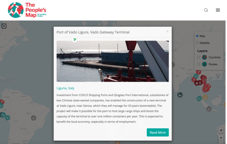 The People’s Map of Global China est une autre plateforme en libre accès qui agrège les profils des pays, les données sur les projets, les informations sur les entreprises et les évaluations de l’impact des activités internationales de la Chine, données produites par des chercheurs du monde entier. Cette archive exhaustive sur l’empreinte de la Chine dans le monde est mise à jour en permanence pour refléter l’évolution des tendances.